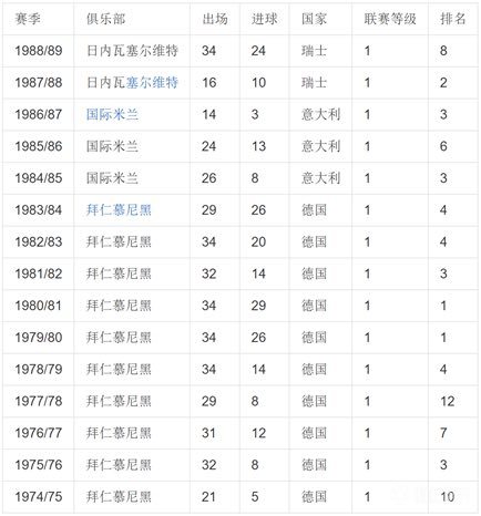 永远的德国传奇——鲁梅尼格 卡尔·海茵茨·鲁梅尼格(Karl-Heinz Rummenigge),1955年9月25日出生于西德利普施塔特,德国职业足球运动员,场上司职前锋。 卡尔-海茵茨·鲁梅尼格是上世纪80年代初期最伟大的球星之一、两届金球奖和世界杯银靴奖得主。现任拜仁俱乐部主席,是欧洲足坛最有权势的人物之一。这位金头发的足球天才充满战术灵感,个人风格实而不华,他速度快,反映敏捷,射门熟练、准确,场上观察能力和判断能力极其出色;他能盘善射;他经常活动于右路和中路,能不断为同伴创造得分机会,是80年代西德国家队的进攻核心共在世界杯打进9粒进球,带领球队夺得两次世界杯亚军和欧洲杯冠军。1989年6月,卡尔·海茵茨·鲁梅尼格宣布退役。 他也是日本动漫《足球小将》中卡尔·海因茨·施奈德的原型。 一个射手的传奇 虽然没能为祖国捧得世界杯,但鲁梅尼格在其它赛场上都取得了辉煌的成就。鲁梅尼格在1980年欧洲杯上迎来了第一个辉煌。他引领西德队打入决赛,决赛中,西德队战胜了当时的“欧洲红魔”比利时队获得冠军。而鲁梅尼格本人也获得了“最有价值球员奖”。 在俱乐部的比赛中,鲁梅尼格也是成绩斐然。在拜仁几年的锤炼使鲁梅尼格变成了一个善传善带,能攻能守的全能型的前卫。鲁梅尼格在1979到1980赛季如鱼得水,以整个赛季的26粒入球毫无疑问当上了得分王。1980到1981赛季,鲁梅尼格再次笑傲射手榜,而他的入球数也跃至29球。连续两年的最佳射手也为拜仁慕尼黑蝉联甲级联赛冠军立下了汗马功劳。 1984年,鲁梅尼格转会到意大利国际米兰队,两个赛季都有出色的表现。1987年加盟瑞士的塞尔韦特队,在1988/1989赛季中共入24球,从而赢得了瑞士甲级联赛最佳射手称号。 1986年墨西哥世界杯是鲁梅尼格最后一次向世界足坛表演他的绝技。由于已过30岁,他体力明显不济。最后西德队以2∶3负于阿根廷队,屈居亚军。 1989年6月,35岁的鲁梅尼格举行了告别赛。在26年绿茵生涯中,他共为国家队出赛95场,为国内俱乐部出赛310场,共进162个球。 退役后的鲁梅尼格一直潜心研究足球理论和科学训练方法,并被国际足联和德国足协授予高级足球讲师称号,也曾被德国一家电视台聘为节目主持人。 1990年鲁梅尼格获"超级金球奖"。1994年出任国际足联特使,为1994年美国世界杯的成功举办做出了贡献。 尽管鲁梅尼格没能获得世界杯,但他已经被公认为西德继贝肯鲍尔之后最为出色的球员之一。他那临危受命,力挽狂澜的巨人形象,已永远地写进了世界杯的历史中。