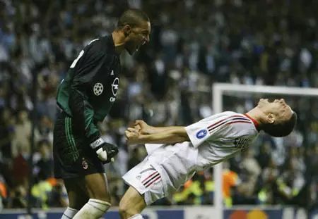 而后来,舍甫琴科把球推入布冯把守的大门,这样已经足以为ac米兰带来欧冠冠军,因为他还要把力气留下来和迪达一起来庆祝米兰的胜利,而也是从这场比赛开始,迪达彻底的征服了米兰球迷。