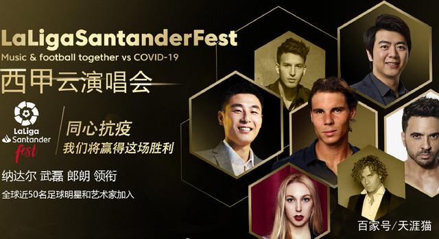 2020年3月29日1点AM.(北京时间),“LaLigaSantander Fest”(西甲云演唱会)在网络通过连线的方式举行。主办方为西班牙甲级联赛,(西甲常年赞助商)桑坦德银行,环球唱片等赞助商及西甲参赛球队球员和音乐家们。这场活动通过球员们和音乐家表演节目来筹集资金用来采购抗疫所需要的物资,这些物资会用于西班牙国内疫情防控相关工作。参与这次活动的球员包括西班牙人队球员武磊;皇马球员拉莫斯;巴塞罗那球员皮克等20位西甲球员参加,活动还邀请到中国钢琴家郎朗等20位音乐家和歌手和著名西班牙网球运动员纳达尔。西班牙云演唱会举办非常成功,活动共筹集到65万欧元善款及一百多万余只口罩等其他医疗用品,将全部用于抗疫工作中。