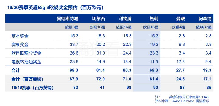 欧战方面,由于1/8淘汰赛脆败于莱比锡,再加上截止性差异等因素,热刺19/20财年只拿到了5,120万英镑,远远低于18/19的9,400万。