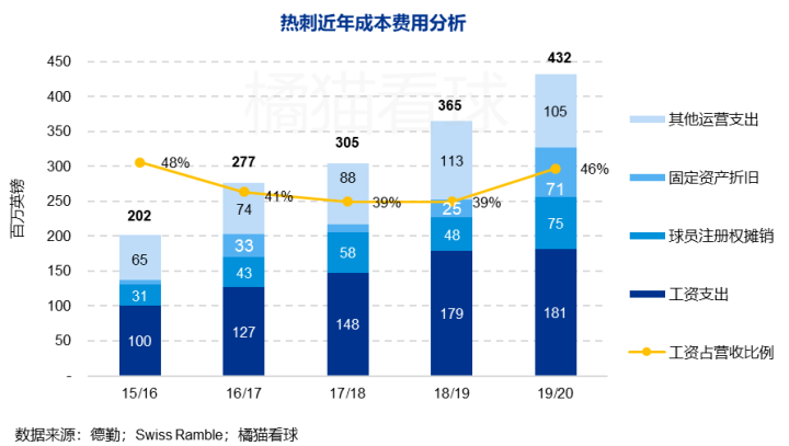 建球场的钱不是天上掉下来的,这时候就不得不提成本控制大师列维了,在他“抠门”的经营策略下,多年来热刺的成本费用水平与对手相比完全不在一个量级上。