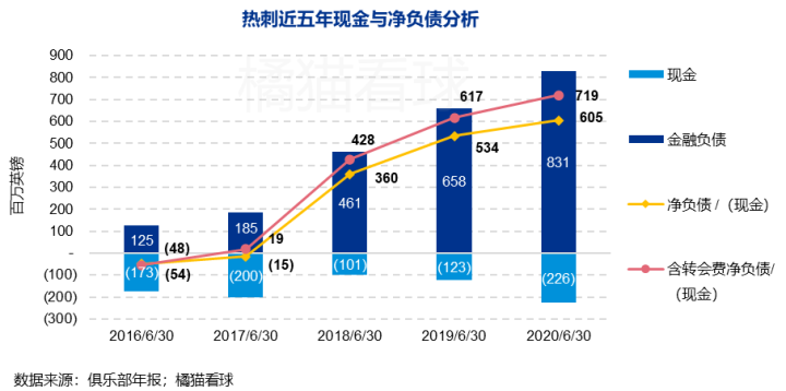 扣除持有的现金后,俱乐部的净负债依然高达6.05亿英镑,比曼联的4.74亿还要高一大截。如果算上净应付转会费1.14亿,这个数字更加可怕。