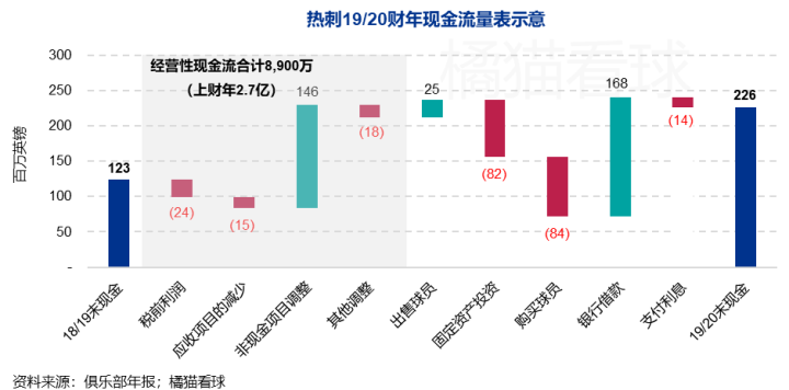 尽管在疫情中遭受重创,得益于良好的成本管控,19/20财年的热刺在经营活动中依然能够结余8,900万英镑现金。然而,对球场和阵容的投资耗费了1.66亿资金,若不是有1.68亿新增银行借款的支撑,俱乐部是很难在新赛季卷土重来的。