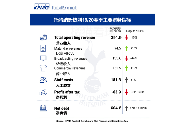 托特纳姆热刺破天荒地在11月底就发布了19/20年报,受疫情影响,俱乐部营业收入下降15%,连续七年盈利的金身告破。