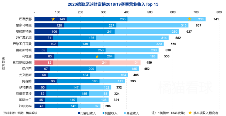 回顾2020德勤财富榜,18/19赛季的热刺因打入欧冠决赛而收入激增,历史上首次爬到营收排行榜的第八位,英超内排名第三。