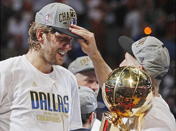 独行侠曾在2006年队史首次闯入总决赛,无奈被热火翻盘。此后,独行侠蛰伏了5年,期间3次止步首轮,才在2010-11赛季迎来队史最值得铭记的一个赛季。该赛季,他们取得57胜25负西区第三,在首轮淘汰开拓者后,独行侠连续遭遇科比、杜兰特和詹姆斯所在球队,结果他们4-0横扫湖人,4-1淘汰雷霆,又在总决赛1-2落后的局面下连胜3场,获得队史首冠。诺维茨基也演绎了NBA史上最为传奇的单核夺冠神话。