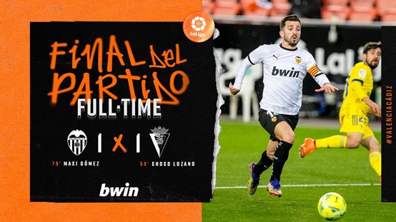 5、西甲第17轮,巴伦西亚坐镇主场和加的斯菜鸡互啄,比赛第58分钟安东尼·洛萨诺精彩倒钩破门帮助加的斯客场领先,第78分钟,加亚左侧传后点,马克西·戈麦斯头球破门,巴伦西亚1-1扳平比分。凭借这一分,巴伦西亚爬出降级区。{巴伦西亚官网}