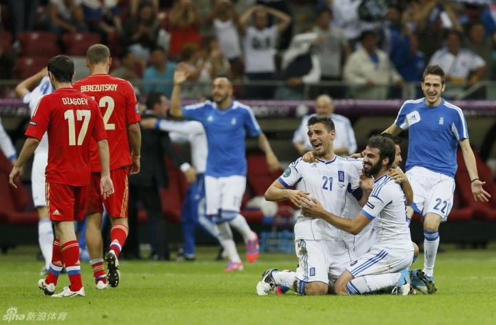 A组最后一轮对于四支球队很公平:谁赢谁铁定出线,而对于前两场积四分的俄罗斯来说,他们有理由比前两场仅积一分的希腊要放松,而且哪怕俄罗斯输球,另外一边两分的波兰和三分的捷克只要打平他们也有机会出线,然而在中场结束前,一次漫不经心的防守被卡拉古尼斯抓住机会一击致命,下半场得知捷克那边1-0领先的时候已经来不及了,希腊人最后时刻绝境逢生。顺带提一句,两年之后希腊出线经历和这次差不多,时任主教练是葡萄牙冠军教头桑托斯。