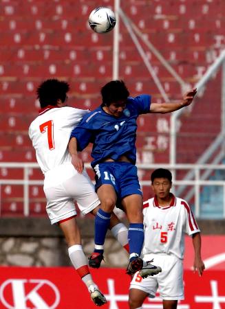 尽管开场双方都踢得十分谨慎,但辽宁队还是幸运的在比赛14分钟时便由吕建军进球取得领先。落后的山东队随即放弃了求稳的策略,对辽宁的后防线发起了猛烈地攻势。王永珀和崔鹏两名进攻球员凭借自己娴熟的盘带技术连续冲击着对方的后防,此时殷铁生也将快马吕征派遣出场,换下了司职后卫的安帅,这个换人最终也为战局带来了决定性的影响。
