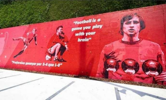 【足球与艺术的碰撞】 在足球场上,球员们就是艺术家,缔造出一场场经典 球场外,壁画也是一种艺术,除了给人们带去视觉享受,也是纪念某个人或者某一个瞬间的纪念品! 下面9副壁画就是最好的诠释! 【1】位于利物浦的克洛普壁画,18年绘制,克洛普无愧于利物浦重夺欧冠的头号功臣 【2】位于利物浦的阿诺德壁画。土生土长的红军66号正在继续翱翔 【3】位于罗马的托蒂壁画,一人一城。必须拥有 【4】位于阿姆斯特丹的伊布壁画,阿贾克斯球迷为纪念当感谢伊布的贡献而作 【5】位于北爱尔兰贝尔法斯特的乔治-贝斯特壁画。缅怀 the best one! 【6】位于巴塞罗那的克鲁伊夫壁画。墙上两句他的名言“足球是一项脑力运动”“5比4好过1比0” 【7】位于米兰的法切蒂壁画。缅怀这个已故的3号 【8】位于莱斯特城的莱斯特城夺冠壁画,16年创作,让奇迹永存 【9】位于伯恩利的肖恩-戴奇壁画,庆祝2016年伯恩利重返英超!