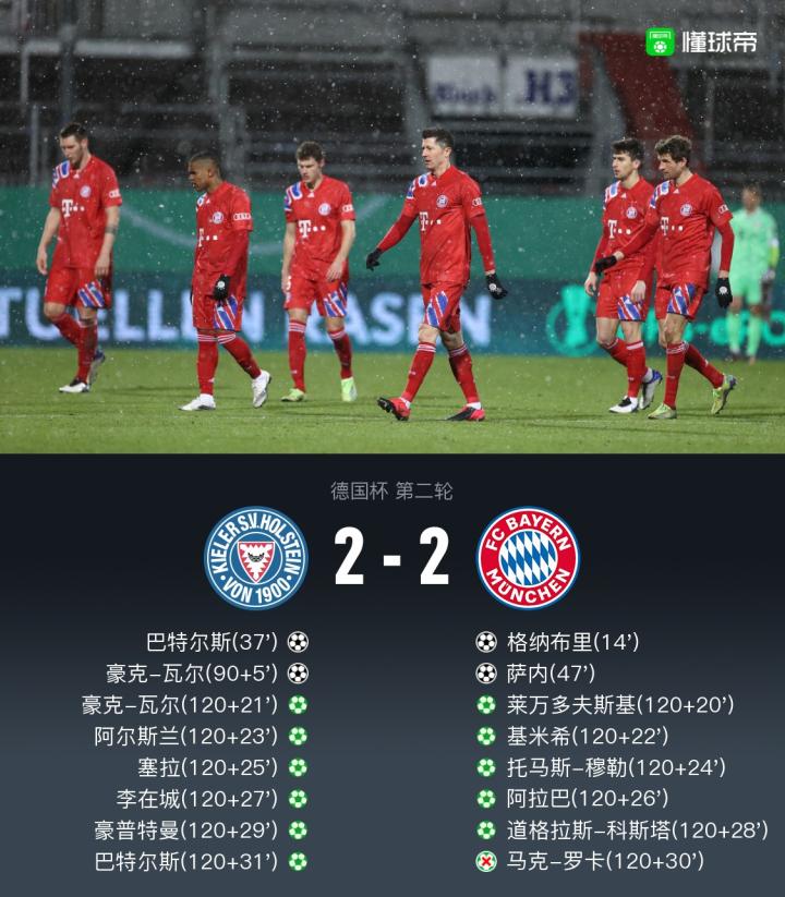 爆冷!拜仁总分7-8荷尔斯泰因基尔遭淘汰,罗卡罚丢关键点球
