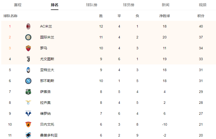 罗马则积34分排名联赛第三,距离排名榜首的米兰6分,距离排名第二的国米3分。身后的尤文图斯、亚特兰大和那不勒斯都少赛一场(尤文图斯和那不勒斯的比赛因为新冠肺炎疫情延期)。尤其是第四名尤文仅仅落后罗马1分,领先亚特兰大和那不勒斯的差距也只有3分。