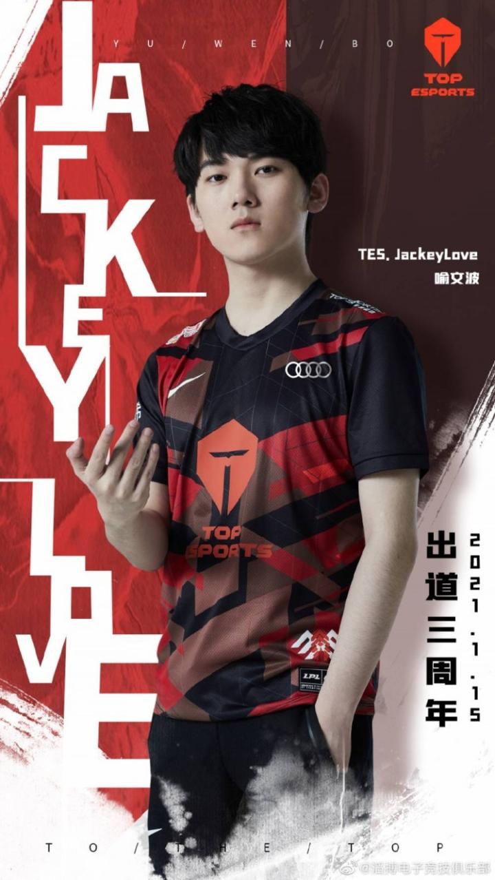 峡谷全视野今日,TES官方发文纪念队内AD选手Jackeylove出道三周年。