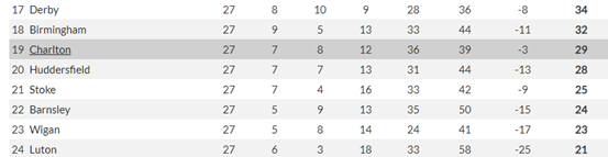 德比郡的颓势早在上赛季就已经显露无疑,大量主力的出走让他们始终挣扎在联赛后半段,去年1月15日鲁尼正式和球队签约时,德比郡排名第17——英冠球队虽多,不过24队,妥妥的后进生;进球数也被一众保级队力压,仅居联赛倒数第二。升级宛若梦呓,降级不是不可能。