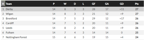 灰头土脸回到英冠的德比郡经过几年积淀,倒也成为了二级联赛的一股不容小觑的力量。