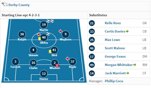 而深陷经济危机的德比郡此时只能剑走偏锋,从青年队中大量提拔年轻球员参加一线队比赛。下半程对布莱克本的比赛,德比郡的“U23”占比令人咋舌。