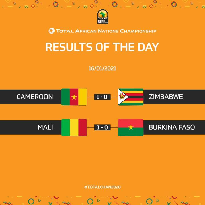 第2轮小组赛对阵:喀麦隆vs马里(北京时间1月21日00:00),布基纳法索vs津巴布韦(北京时间1月21日03:00)