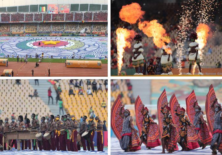 赛前举行了30分钟的开幕式,表演热情奔放,极具非洲当地文化特色,邀请到了喀麦隆国家舞蹈团、喀麦隆说唱歌手Stanley Enow,以及演唱官方比赛歌曲《We are all champions(我们都是冠军)》的喀麦隆歌手Jane Mary Ihims。