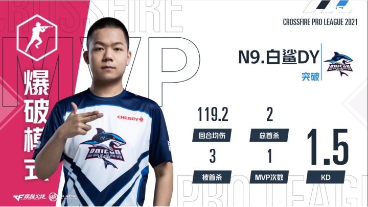 全场MVP:汪浩(ID:N9.白鲨DY,回合均伤害:108.1,KD:1.65)