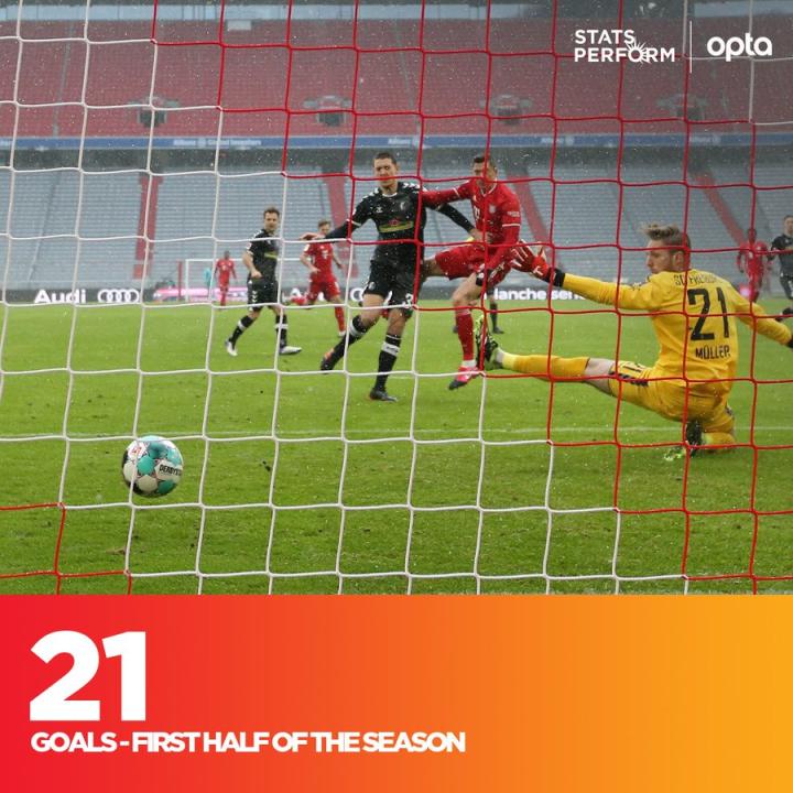 1968/69赛季,传奇中锋盖德-穆勒在德甲半程收获20球。此后,这项纪录尘封了足足52年。1月17日,本赛季德甲第16轮,不久前才斩获世界足球先生的莱万多夫斯基,接格纳布里策划、穆勒助攻后攻入本赛季第21球。仅用16轮,莱万多夫斯基就打破了这项已经尘封了52年的纪录,这是莱万本赛季收获所哟个人荣誉之后的又一项壮举。本轮半程结束之后,莱万又因为攻破埃尔南德斯所创造的点球,将这项纪录刷新到22球,在很多个赛季里,这样的进球数是足够获得德甲联赛最佳射手的。不过有一点区别之处,盖德-穆勒时期拜仁的点球手是足坛史上点球命中率最高的布莱特纳,而莱万多夫斯基本赛季一共有5粒点球(不算欧冠1粒),而盖德-穆勒则是一粒没有。