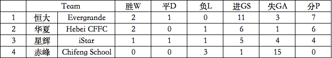 另外一场比赛,恒大05-2队2比1战胜华夏幸福05队,2胜1平获得小组第1,华夏幸福05队获得小组第二,星辉06队获得小组第三。明天休赛一天,后天星辉06队将进行5-8名排位赛。