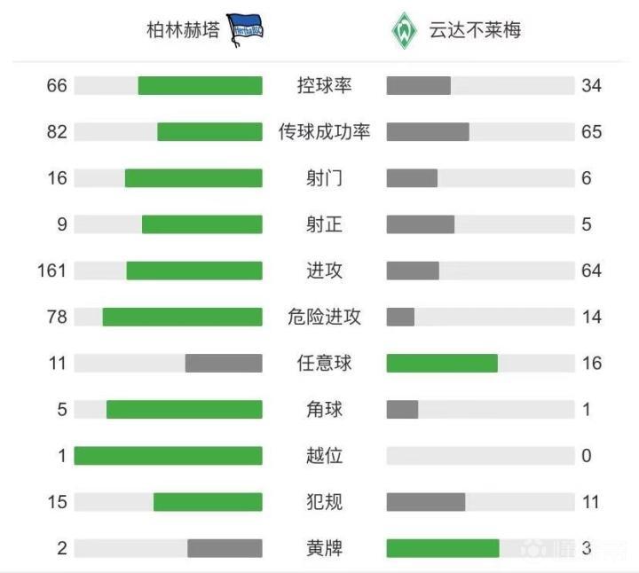 柏林赫塔1-4不莱梅,比当古传射,库尼亚失点+失单刀