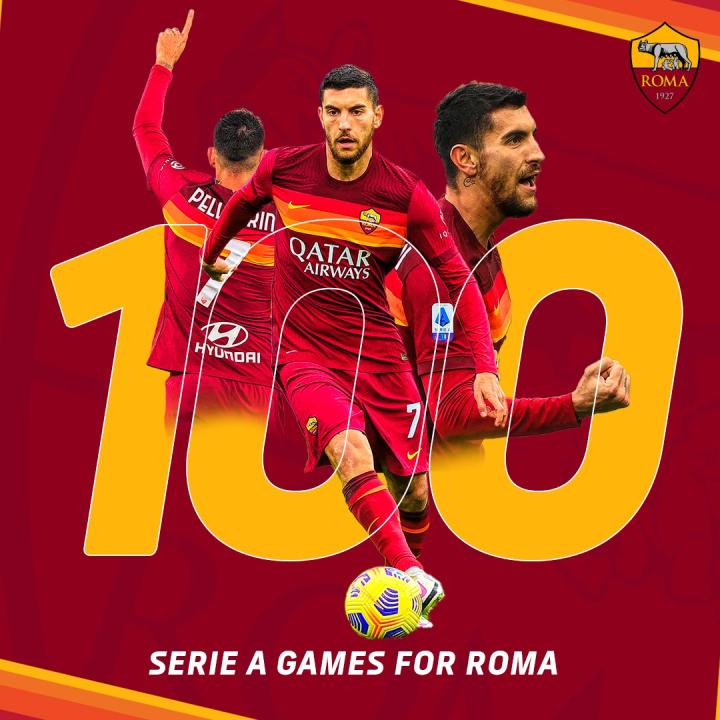 里程碑,佩莱格里尼解锁罗马生涯联赛百场成就
