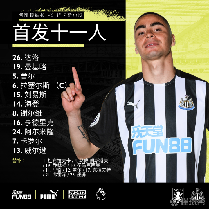 首发十一人确定! vs阿斯顿维拉 卡罗尔首发,圣马替补待命