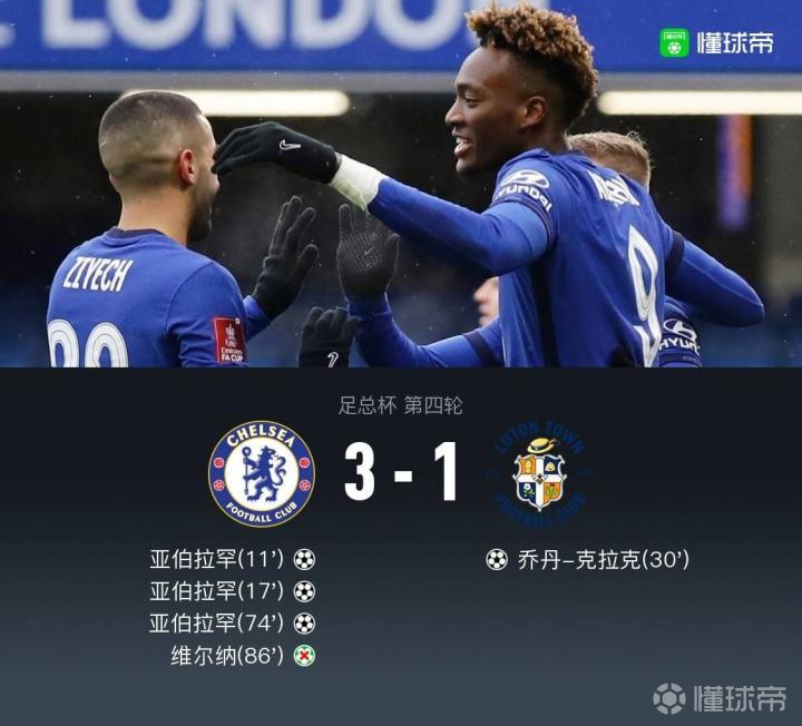 切尔西3-1卢顿足总杯晋级,亚伯拉罕戴帽,维尔纳失点