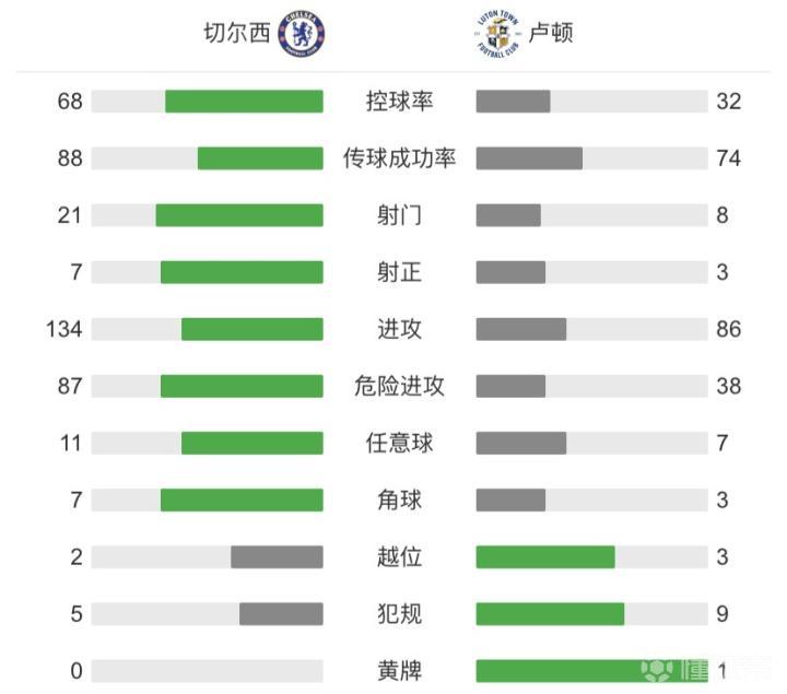 第74分钟,亚伯拉罕完成帽子戏法,切尔西3-1卢顿。