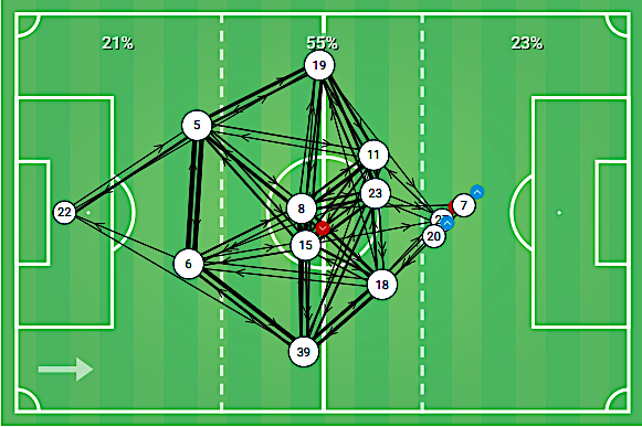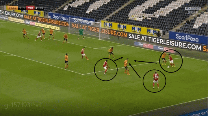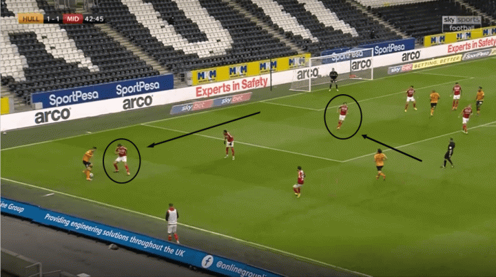 在以微弱优势赢下对阵赫尔城的比赛后,沃诺克实现了他在卡迪夫的战术安排的复刻——位置流动的打法,加上来自球队中场的高强度压迫,沃诺克几乎剥夺了东道主在半场内的所以可能的传球空间,或者是来自对手后场的长传反击。