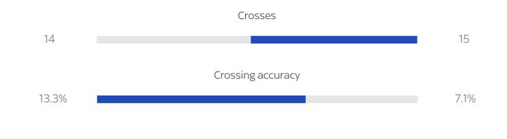 米德尔斯堡3-0米尔沃尔 传中数/传中成功率: