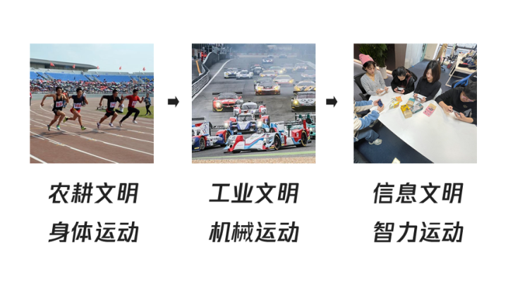 第二个阶段,工业文明的机械运动,代表项目是赛车运动;