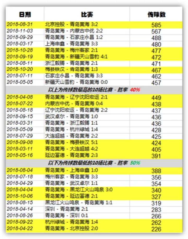 后来的事情,大家都知道了。他来到了中国,踢着多数人嘴里的“巴萨足球”。虽然2019年中途他离开了执教了接近四年的青岛黄海俱乐部,但是我们仍然想从数据上给出一份关于乔迪在中国最后一个完整赛季的“传控真面目” -