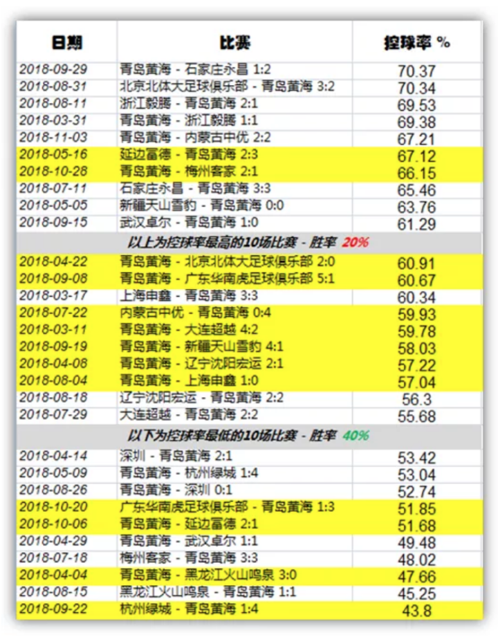 图:乔迪2018赛季按照控球率排名后的比赛胜率
