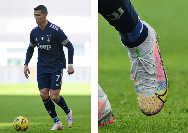 本周另一款获得首发的重量级战靴是新一代耐克Mercurial 'Dragonfly',在尤文2-0战胜博洛尼亚的比赛中,C罗穿上了这双球鞋。不过首秀只持续了上半场,C罗在下半场换回Dream Speed 3 Mercurial Superfly。