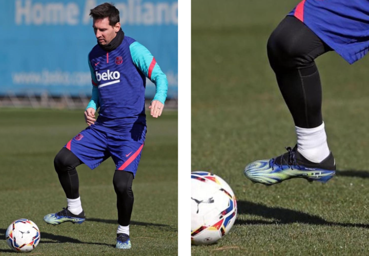 阿迪达斯为 "Superlative Pack"更新了配色,梅西也换上了后跟上带有个人标志的新造型。