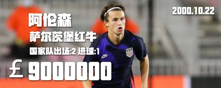 出身在新泽西的00后,目测萨尔茨堡从美国又挖了个宝,准备养肥了卖的节奏。阿伦森是很多人非常看好的又一个美国新人。过去的一年在美职联27场4球5助攻。