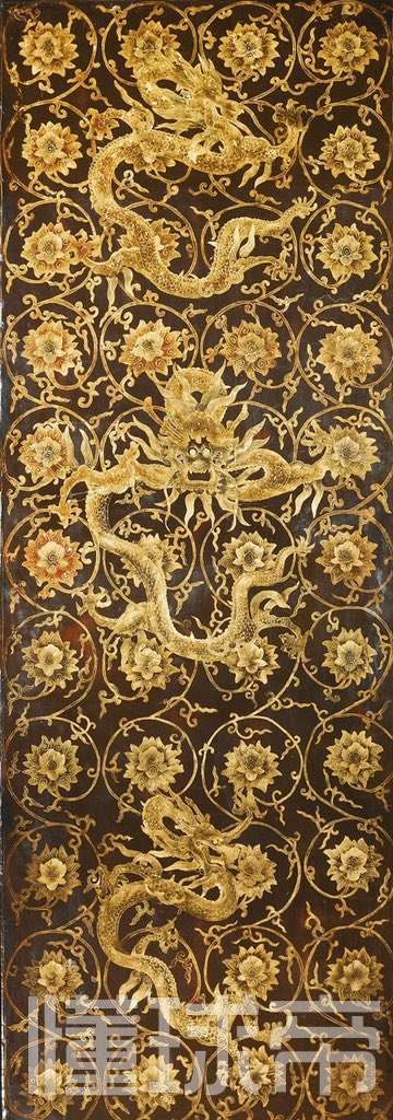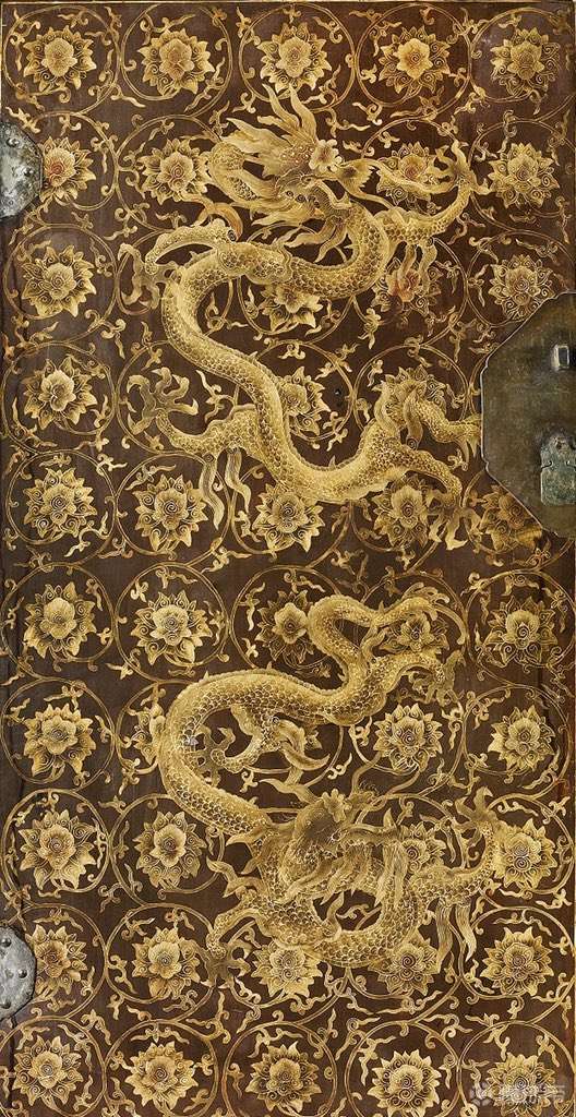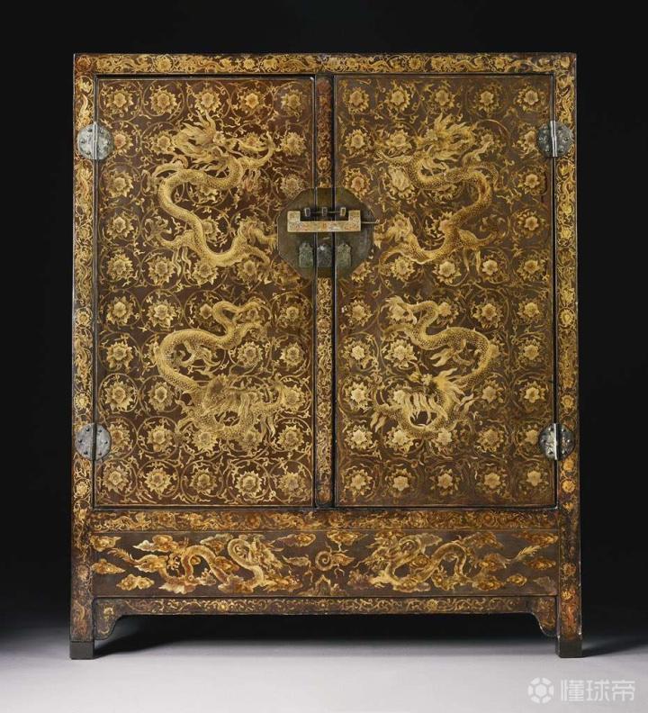 明代.黑漆描金缠枝莲龙纹柜