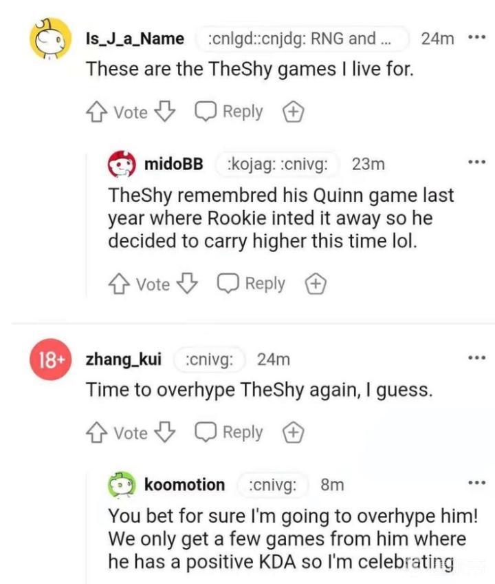 -我肯定会狂吹他!因为这是Theshy仅有不多的KDA为正的比赛,所以我已经在庆祝了。