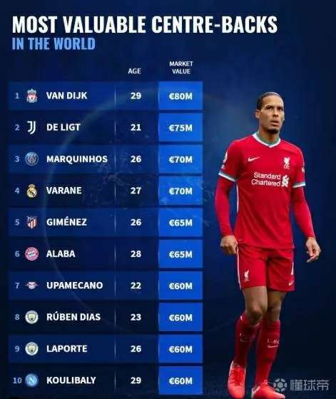 意大利再无后卫!转会市场盘点了当今世界足坛身价最...lampardg8 @懂球帝2021-01-28 19:19意大利再无后卫! 转会市场盘点了当今世界足坛身价最高的中卫TOP10,范迪克8000万欧排名第一。 1、范迪克 8000万欧 2、德里赫特 7500万欧 3、马尔基尼奥斯 7000万欧 4、瓦拉内 7000万欧 5、吉梅内斯 6500万欧 6、阿拉巴 6500万欧 7、乌帕梅卡诺 6000万欧 8、鲁本-蒂亚斯 6000万欧 9、拉波尔特 6000万欧 10、库利巴利 6000万欧展开更多