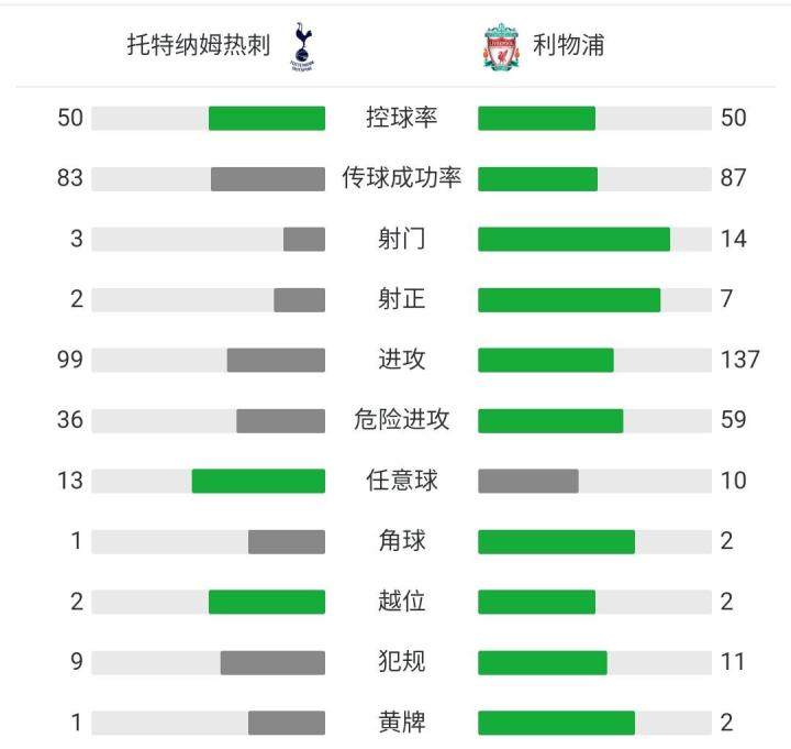 第29分钟,贝尔温阻挡阿诺德快速反击拿到一张黄牌。第35分钟,凯恩长传,阿利松出击到禁区线附近接球引起孙兴慜的抗议。