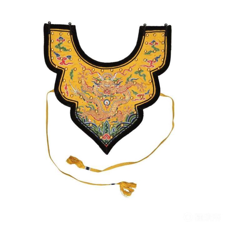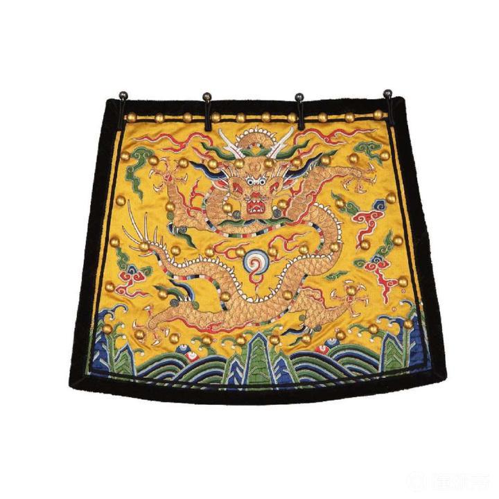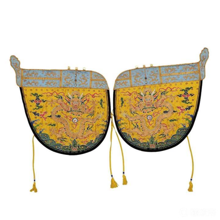 清康熙.明黄色缎绣彩云金龙纹绵大阅甲(部分)1、...