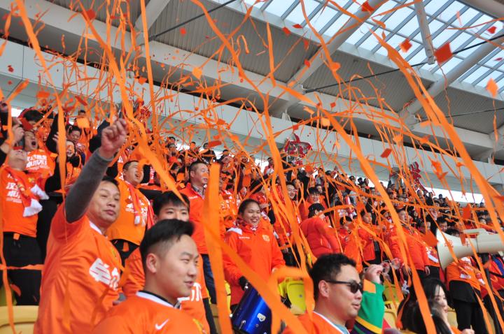 在庞大的五环体育场,看着李铁麾下在场下拼抢,听着五万人高呼卓尔的呐喊,似乎只穿着自带热血的橙色球衣依旧不够姜荷迸发所有热情。于是她背上了的鼓,站在了看台前端,承担起拍响球迷呐喊助威节奏的任务。“刚开始做鼓手的时候经手常磨出泡,一场球赛下来确实会有点累,但是看到大家在带动下都热血沸腾,一起为球队助威还是超级有成就感的。”