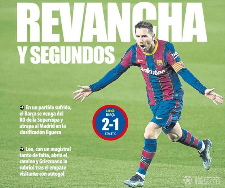 每体&世体今日头版:梅西是无价的;巴萨完成复仇升至第二桀骜丶野心家 @懂球帝2021-02-01 08:39巴萨2-1击败毕尔巴鄂竞技,西班牙两大报纸《每日体育报》和《世界体育报》都在头版中将梅西作为了封面。《每日体育报》以“梅西是无价的”为题,并表示梅西再度成为了比赛中的决定性人物,且打进了巴萨生涯的第650球。另外,巴萨也上升到了积分榜第二的位置。《世界体育报》则以“复仇和第二名”为题,表示巴萨击败毕包报了西超杯失利之仇,并反超皇马来到了积分榜第二。展开更多