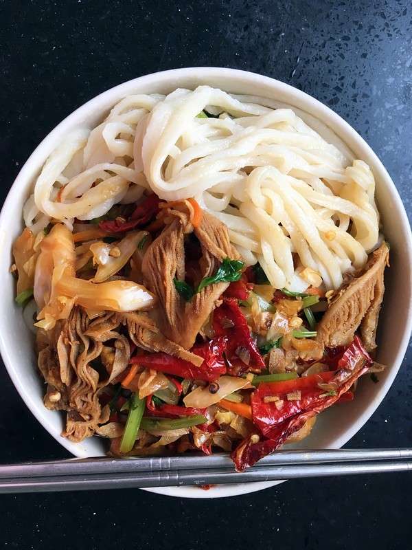新疆拌面 作者:刘建国 如果你来新疆,问哪种小吃最值得一尝,我便会不假思索地告诉你:拌面。 拌面于新疆而言,就好比炸酱面之于北京、牛肉面之于兰州、油泼面之于陕西、刀削面之于山西、担担面之于四川、热干面之于武汉、锅盖面之于镇江,既是城市地标的象征,更是城市品牌的符号与代言词。 来到新疆,千万别担心会饿着肚子。这里的小吃除了公认的味道鲜美外,还有一个显著的特点:实惠。比如大盘鸡、手抓肉、抓饭、羊肉串、椒麻鸡以及烤包子等,吃一口就是一口,那种入肚的扎实和充盈感,也正契合了新疆人说一不二脚踏实地的性格。但真要说到价廉味美老少皆喜的美食,恐怕还得数拌面了。一二十块钱一盘的拌面,常常能吃出一两千元一桌的大餐般的酣畅! 几日前,闲来无事,随手拍了几张自己吃拌面的照片晒到朋友圈里,惹得几千里外的老同学齐齐点赞,就连长期潜伏于天山南北、认识或不认识的各种好友,失灵已久的嗅觉仿佛突然间插上了翅膀,争先恐后跳了出来,纷纷竖起大拇指,还配上个流哈喇子的表情。不由纳闷:天天吃着拌面,还馋成这般? 也许你不以为然:如此引得无数粉丝竞折腰,那玩意究竟有多好吃? 尝了就知道! 街道两旁,不差的永远是小吃部。去哪家吃呢? 随便哪一家! 假如你深秋时节来新疆,先别惦记着去看什么胡杨,跟我进一家老回民拌面王餐馆再说。刚坐定,茶就上来了,“三泡台”的那种,冰糖枸杞一样不少。嘬一口,似一杯稀释过的蜂蜜水。点罢菜面的这当口上,你可边品茶,边剥几瓣大蒜。不是说“拌面不就蒜,味道减一半”嘛!或者干脆闭上眼,聆听后堂传来锅碗瓢勺的交响乐,静闻橱窗飘出一缕带着温度的醇香,想象入嘴时口腔里的繁华景象…… 有时候,等待也是一场盛宴。 顶多十来分钟的工夫,就在你的胃口被充分调动起来,食欲空前高涨之际,笑靥如花的姑娘恰好举着托盘走过来了。一盘菜、一盘面。菜,色泽艳丽郁香扑鼻;面,晶莹剔透粗细有度。新疆爷们吃拌面,喜欢把菜直接扣在面上,用筷子搅拌均匀(这也许就是“拌面”的来由吧),此时,你就明白了盛面为啥要用盘子而不是碗了。当然,你也可以不用“扣”,夹一口菜,捞一口面,咬一口蒜瓣,一场心无旁骛的大快朵颐之旅就此启程! 吃完啦,喝口温茶,在口腔里来回打几个旋儿,唇齿间便又涮出一道意犹未尽的余香来;或者要来半碗面汤,“咕咚咚”灌下去,略显沉重的肠胃顿时熨帖无比。此所谓“原汤化原食”也!现在,抬起屁股抹把嘴,走,赏胡杨去! 此刻,被一大片金灿灿的胡杨林包围。你昂首挺胸手抚圆鼓的肚皮,从容地打个嗝吐口溢满蒜香的清气,感叹沙漠之浩瀚无垠,感慨胡杨之沧桑坚韧;亦或坐在高处沙包上,享受暖暖的秋光沐浴着身子,等待红红的太阳石头般滚下山坡,一身的风尘与疲惫瞬间也石头般滚落下去。 假如你是夏天到了新疆,夜市必定是绕不过去的话题。夜市上也有拌面。坐在露天小方桌前,一盘菜,一盘面,一把羊肉串,一杯啤酒,最好是冰镇大乌苏。你可以解开衫扣敞胸露腹,放肆“吸溜”长长的拉面,菜帮子嚼得“咔嚓”作响。在这里没人说你粗俗,大家都低着头做相同的事。烤肉串“滋啦啦”翻着肥油,啤酒“窸窣窣”冒着气沫。啃几串烤肉,喝两口啤酒,霎时鼻尖冒汗,嘴中生风,浑身通透。望路边垂柳婆娑,看异域美女裙袂飘逸;仰烤炉袅袅轻烟尽纳月神之口,羞星星眨眼投来清凉一吻,一时难辨天上人间——哇,人生亦不过如此! 拌面不挑时令,哪个季节都可吃出一番人生的踏实与澎湃。 拌面亦可增进民族情感。维吾尔族同胞天生好客,招待客人的方式也有好多种。拌面乃主食,倘若他以主食待你,则认准你是个敦厚可交的人。新疆人就是这么实在,不玩虚的。你帮他一点小忙,他便会挽住你胳膊:走,房(páng)子嘛拌面吃一哈! 品过了,也亲身感受过了,是不是很过瘾啊,是不是禁不住感慨万千:如此只应天上有的美味,怎么偏偏落户至西域边陲呢?那咱不妨一起去深入了解一下拌面吧。 拌面,俗称拉条子,维吾尔语叫“兰格曼”,是一种地域特色浓郁的清真面食,其菜面合一,以面为主,菜为辅。拌面的历史想来也是悠久漫长的,它本身就反应着维吾尔族由牧业生产向农业生产的转变。关于拌面的起源有多种版本,最可信的一种说法是,当年山西骆驼客运送货物,穿越“丝绸之路”,趟过茫茫戈壁,咬一口干粮,思念一回家乡饭菜。好不容易挨到“迪化”(今乌鲁木齐市),遂安锅起灶、拉面炒菜,美美犒劳了一下自己干瘪空洞的肠胃。很快,这种面食就在西域传播开来,渐渐被天山南北各民族所接纳、学习、交融,最后扎根于新疆这片沃土上。 拌面,除了其本身的色泽和香醇所带来的视觉与味蕾冲击外,更大的惊喜还在于它能迅速聚集和提升人体内所有的能量,并尽可能使之源源不竭。生为新疆人,一生中少不了跟茫茫沙漠漫漫戈壁打交道,他们治理沙漠,拓荒培林,建设边疆,挑战大自然的同时,与自己的身体极限做着生死较量。作为干粮的烤馕,只能起临时垫垫虚弱肚皮的作用,而真正撑起他们筋骨的,也只能是那瓷实耐饿、韧劲十足的拌面了。 在新疆,吃拌面是可免费加面的,一盘不够加两盘,两盘不够三四盘!够扎实,够任性吧!新疆天长,吃了加过面的拉条子,你顿时会感觉精力充沛筋强骨壮,一把“坎土曼”能从日出抡到日落,两片脚丫可趟过天山南坡北陂。 然而,拌面的乐趣终极