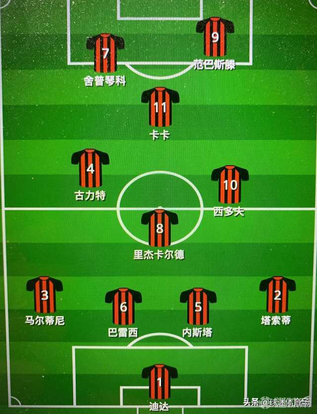 AC米兰历史最佳11人阵型:4-1-2-1-2门...lampardg8 @懂球帝2021-02-02 10:31AC米兰历史最佳11人 阵型:4-1-2-1-2 门将:迪达(替补:罗西,阿比阿蒂) 后防线:马尔蒂尼,巴雷西,内斯塔,塔索蒂 (替补: 卡福,加利,科斯塔库塔,马尔蒂尼他爹) 后腰:里杰卡尔德 (替补:加图索) 中场:古力特,西多夫 (替补:睡皮,阿尔贝蒂尼,多纳多尼) 前腰:卡卡 (替补:老将里维拉) 前锋:范巴斯滕,舍普琴科 (替补:维阿,英扎吉,诺达尔,伊布) 欢迎大家热议…展开更多