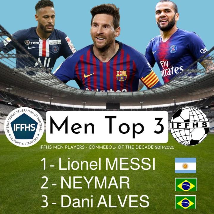 毫无悬念!梅西当选IFFHS近十年南美最佳球员ParaSylwia @懂球帝2021-02-03 10:48IFFHS(国际足球历史和统计联合会)公布了2011-2020年十年间的最佳南美男子足球运动员,梅西当选,排名第二的是内马尔,第三名是丹尼-阿尔维斯。IFFHS公布了最近十年间南美的最佳男足球员,梅西毫无悬念当选了这一荣誉,排在他后面的分别是是内马尔和丹尼-阿尔维斯。除此之外,梅西还在此前入选了IFFHS评选的过去十年男足最佳阵容和南美的最佳男足阵容。展开更多