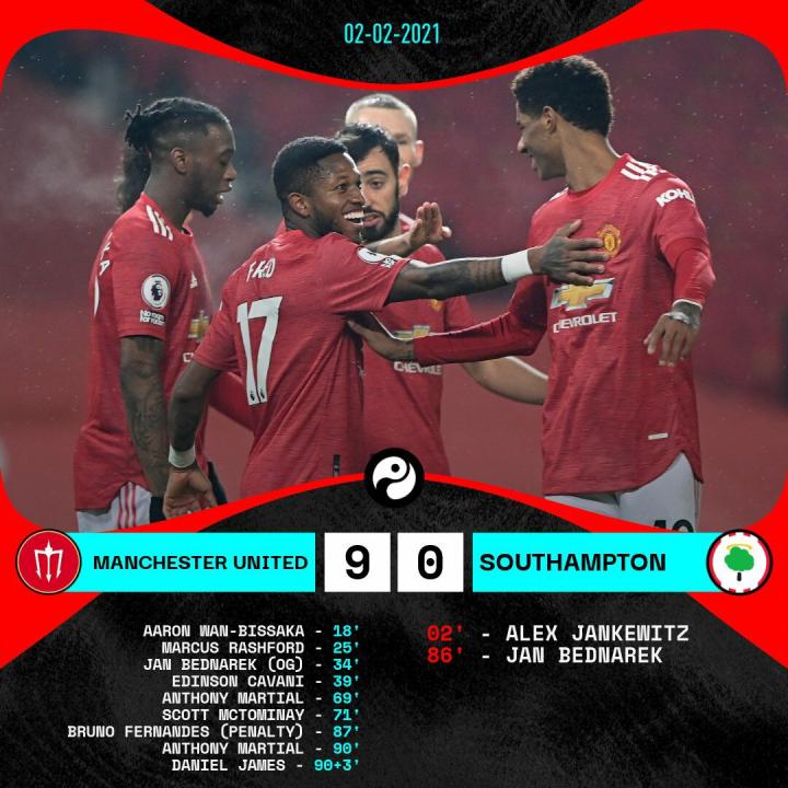 至于最后2球,曼联是怎么打怎么有了,要是补时时间更长,相信红魔绝对有可能打进第10球,打破英超纪录的。