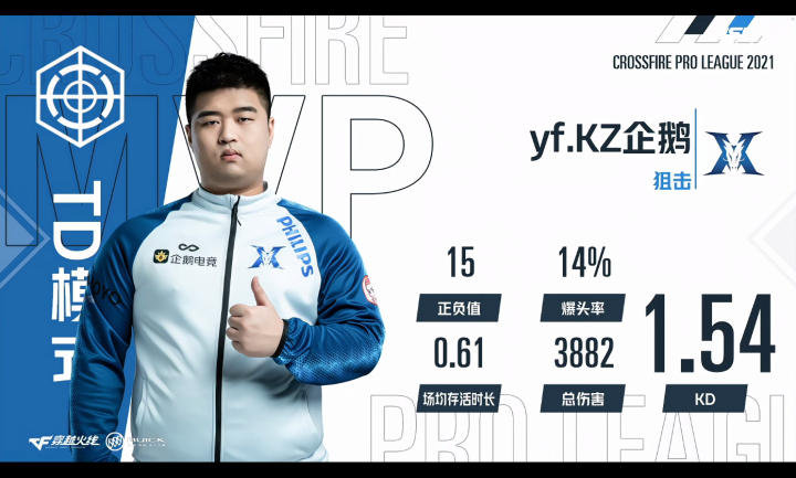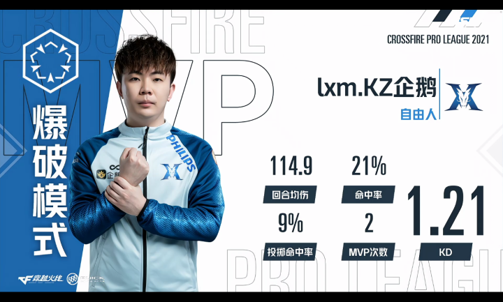 全场MVP:刘爽(ID:lxm.KZ企鹅,回合均伤害:114.9,KD:1.21)